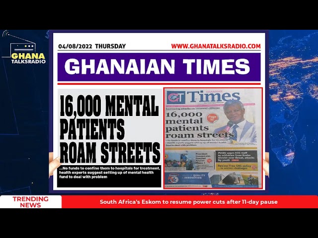NewsGhana Newspaper [04/08/22] GTR NEWSPAPER HEADLINES: Nana Opens Sunyani Airport, NDC Blasts Gov’t, more 4th August 2022 0 467 Share Facebook Twitter WhatsApp Linkedin Pinterest Telegram Viber Top headlines from today’s papers…Nana Opens Sunyani Airport, NDC Blasts Gov’t; more