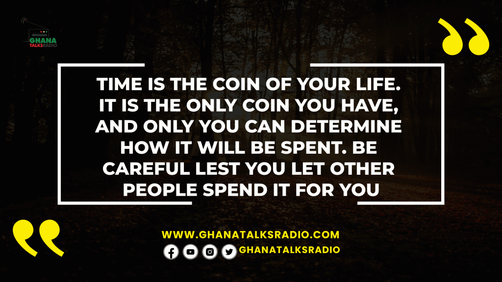 “Time is the coin of your life. It is the only coin you have, and only you can determine how it will be spent. Be careful lest you let other people spend it for you.”
