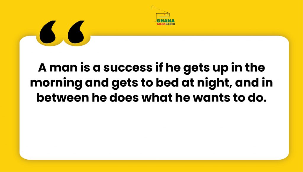 LifestyleInspirational Quotes [07/10] GTR Inspirational Quotes – TODAY 7th October 2022 0 407 Share Facebook Twitter WhatsApp Linkedin Pinterest Telegram Viber A man is a success if he gets up in the morning and gets to bed at night, and in between he does what he wants to do.