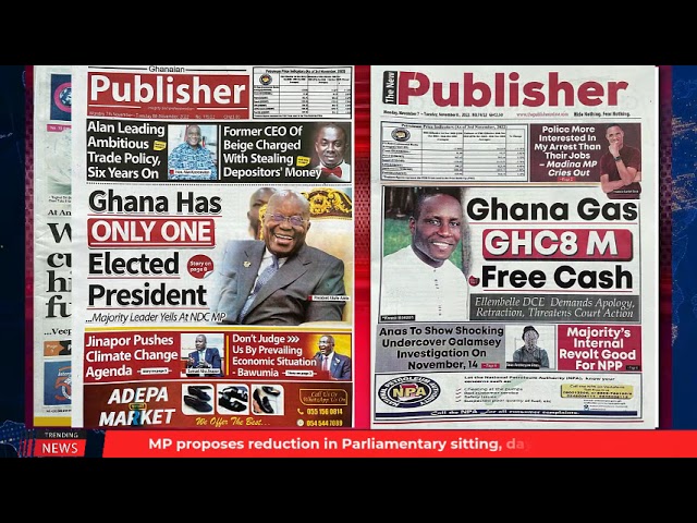 NewsGhana Newspaper [07/11/22] GHANA NEWSPAPER HEADLINES: We’ll Curtail High Food, Fuel Prices – Veep; more 7th November 2022 0 296 Share Facebook Twitter WhatsApp Linkedin Pinterest Telegram Viber Today’s Newspaper Headlines Demo Against President, Vice Flops We’ll Curtail High Food, Fuel Prices …Veep Assures Ghanaians Ghana Has Only One Elected President … Majority Leader Yells At NDC MP Ghana Gas GHC8M Free Cash