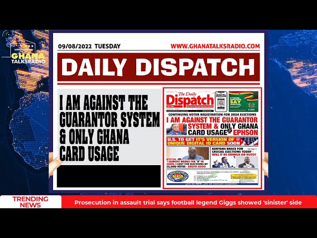 NewsGhana Newspaper [09/08/22] GTR NEWSPAPER HEADLINES: Sod Cut For Yendi Road Dualisation, No Reshuffle; more 9th August 2022 0 359 Share Facebook Twitter WhatsApp Linkedin Pinterest Telegram Viber Top headlines from today’s papers… Sod Cut For Yendi Road Dualisation, No Reshuffle, more