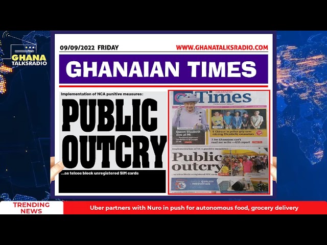 NewsGhana Newspaper [09/09/22] GHANA NEWSPAPER HEADLINES: Okudzeto goofs again; Unmask Aisha Huang cartel; more 9th September 2022 0 332 Share Facebook Twitter WhatsApp Linkedin Pinterest Telegram Viber Today’s News Paper Headlines
