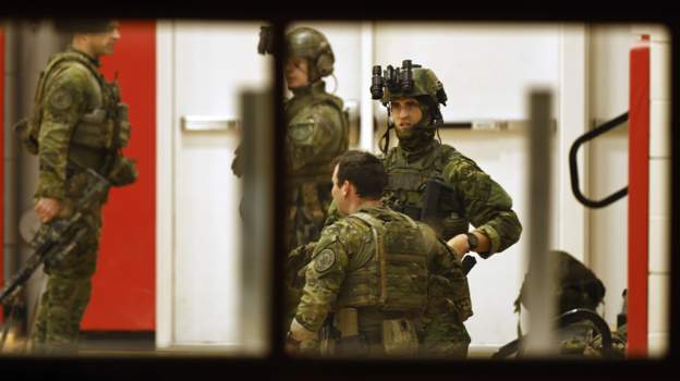 Chilling CCTV images show the shooter pointing his rifle as he walked into the Sparetime Recreation bowling alley, while dramatic footage shows terrified people running for their lives. Residents have been told to lock their doors.