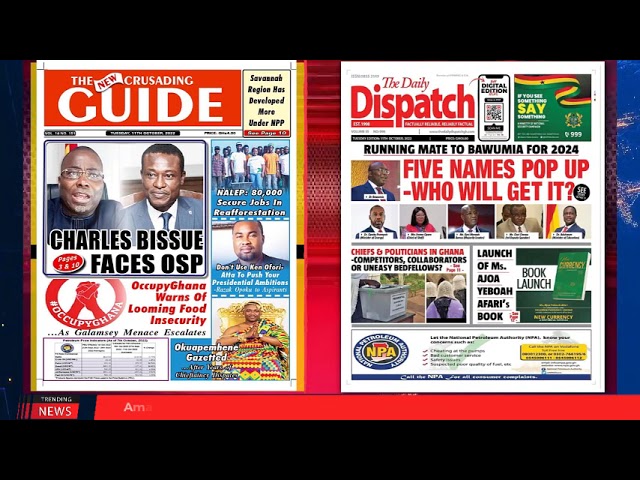 NewsGhana Newspaper [11/10/22] GHANA NEWSPAPER HEADLINES: Jomoro MP Sweats In Court; more 11th October 2022 0 417 Share Facebook Twitter WhatsApp Linkedin Pinterest Telegram Viber Today’s Newspaper Headlines Jomoro MP Sweats In Court Charles Bissue Faces OSP Five Names Pop Up – Who Will Get It Bloody Assault At B5 Education Must Remain A Priority