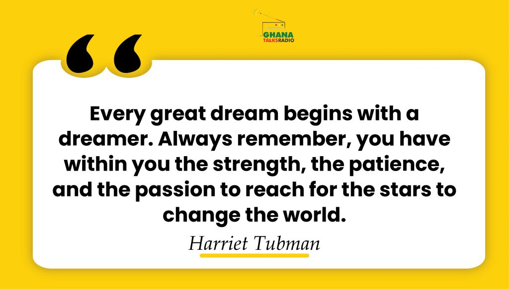 “Every great dream begins with a dreamer. Always remember, you have within you the strength, the patience, and the passion to reach for the stars to change the world.” ~Harriet Tubman