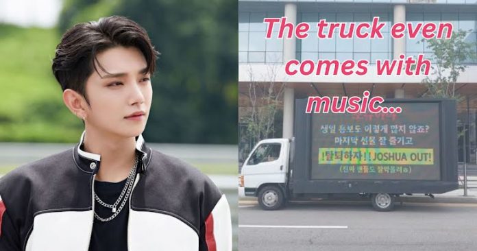 Although they had been sending trucks to their agency’s building recently, they have now decided to send them to other agencies like SM Entertainment as well, with the goal of “shaming” Joshua in front of other artists.