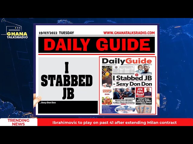 NewsGhana Newspaper [19/07/22] GTR NEWSPAPER HEADLINES: Veep launches e-pharmacy platform, I stabbed JB, and more 19th July 2022 0 357 Share Facebook Twitter WhatsApp Linkedin Pinterest Telegram Viber Top headlines from today’s papers…