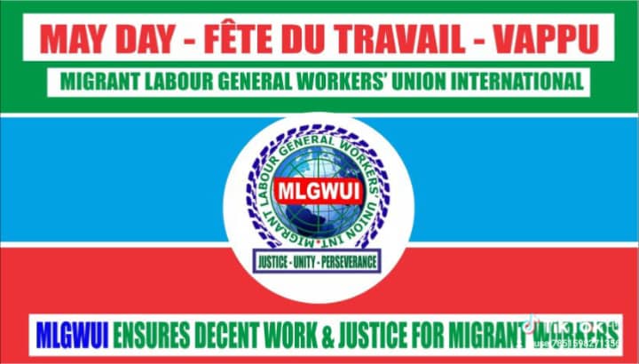 The Migrant Labour General Workers’ Union International with its’ education-training-legal-counselling bureau Finnish-French Education Resource Centre (MLGWUI-FFERC) wishes all Migrant Workers and members of their families home and abroad a Peaceful Commemorative 2025 May Day as international workers day globally.