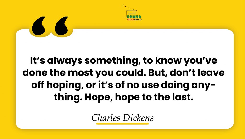 “It’s always something, to know you’ve done the most you could. But, don’t leave off hoping, or it’s of no use doing any thing. Hope, hope to the last.” ~Charles Dickens