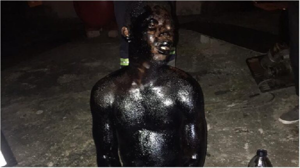 Twenty-five-year-old Emmanuel Gyimah is on admission at the Effia-Nkwanta Regional hospital after he attempted stealing bitumen belonging to his employer.