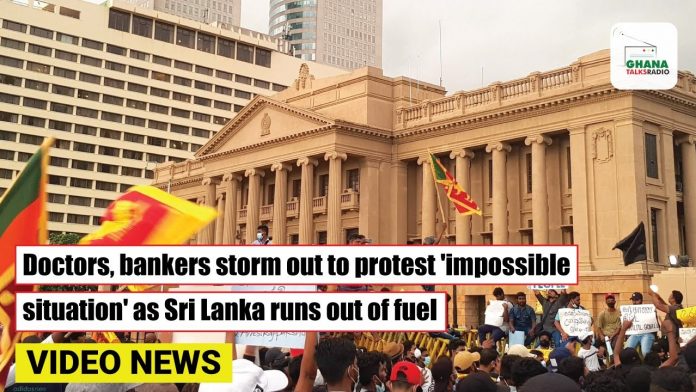 -Doctors, bankers storm out to protest ‘impossible situation’ as Sri Lanka runs out of fuel