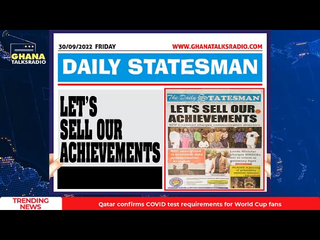 NewsGhana Newspaper [30/09/22] GHANA NEWSPAPER HEADLINES: 2021 Petroleum Sales Hit GH¢32.94bn, more 30th September 2022 0 454 Share Facebook Twitter WhatsApp Linkedin Pinterest Telegram Viber Today’s Newspaper Headlines 17 OMCS Fail To Pay GHC249m Tax For Oil Lifted We Are Open To Dialogue 2021 Petroleum Sales Hit GH¢32.94bn We’ll defeat galamseyers Let’s Sell Our Achievements New York to host New Hub