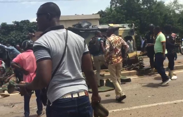 At least four(4) soldiers, all occupants in an armored military vehicle have sustained various degrees of injuries after they were involved in an accident on Thursday morning in Bolgatanga, the Upper East Regional capital.