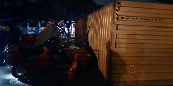 The two on board – Eric Pamford Peters and Ama Amponsah – were trapped in the car but with the help of personnel of the Ghana National Fire Service (GNFS) and a recovery truck from National Road Safety Authority (NRSA), their bodies were removed.