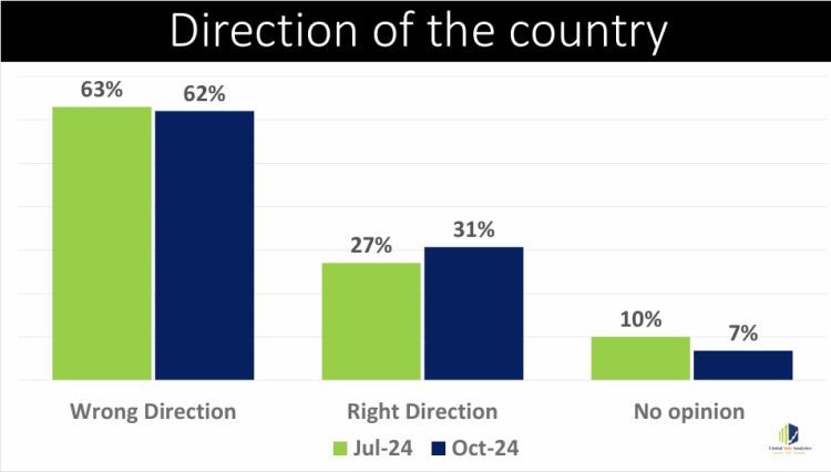 A recent report by Global InfoAnalytics has found that a substantial 62% of Ghanaians believe the country is going in the wrong direction.