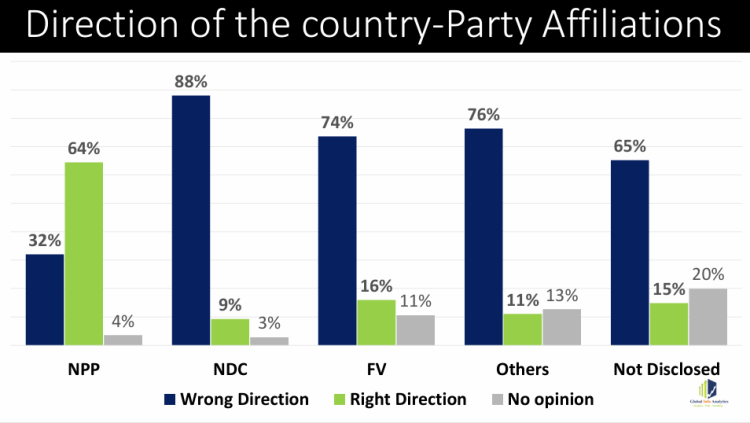 However, the perspective among NPP voters differs significantly. While 32% believe the country is headed in the wrong direction, a majority of 64% expressed confidence that Ghana is moving in the right direction.