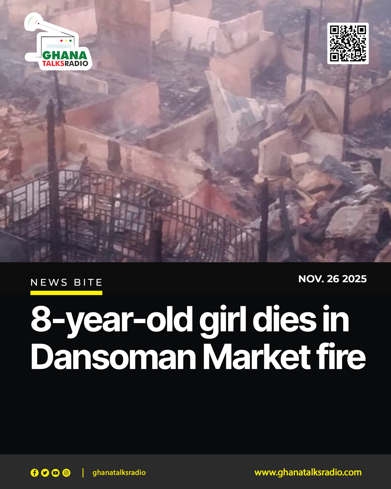 An 8-year-old girl has died after being trapped in a devastating fire that swept through Dansoman Market in the early hours of Wednesday, November 26, 2025.