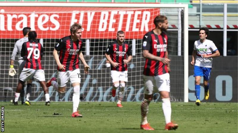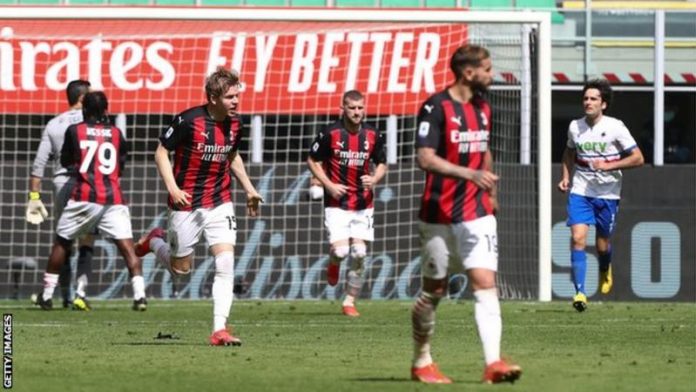 AC Milan scored an 87th-minute leveller against 10-man Sampdoria to keep their faint Serie A title hopes alive.