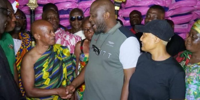 The business magnate led his team to donate relief items to the affected communities in Central, South, North Tongu and Keta constituencies.