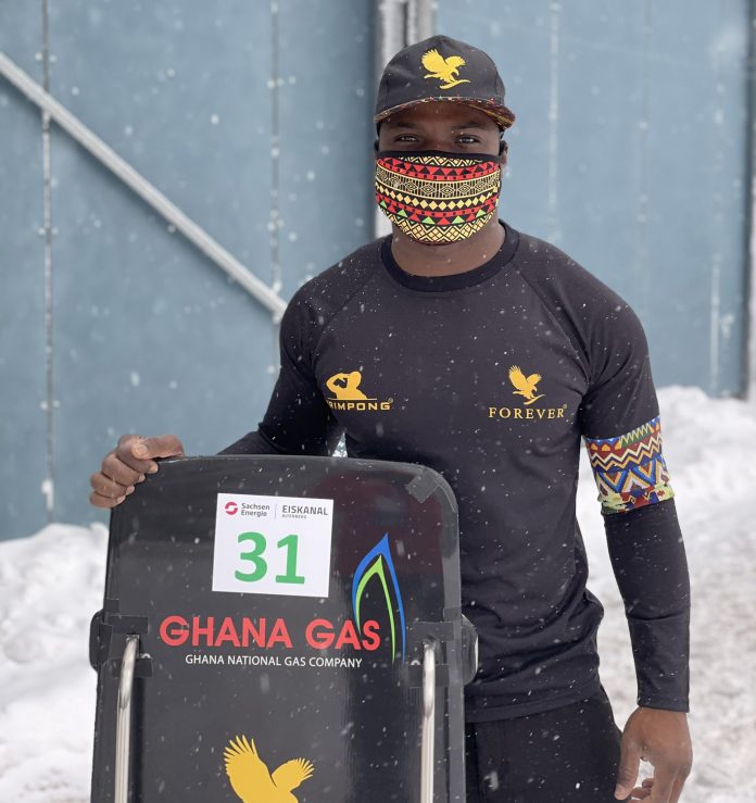 Ghana’s skeleton athlete, Akwasi Frimpong finishes ahead of competitors from Italy, Switzerland, Poland, Denmark, Czech Republic, and Bulgaria in his first race of the 2020/2021 International Bobsleigh and Skeleton Federation season. Frimpong finished 24th out of 31 international athletes.
