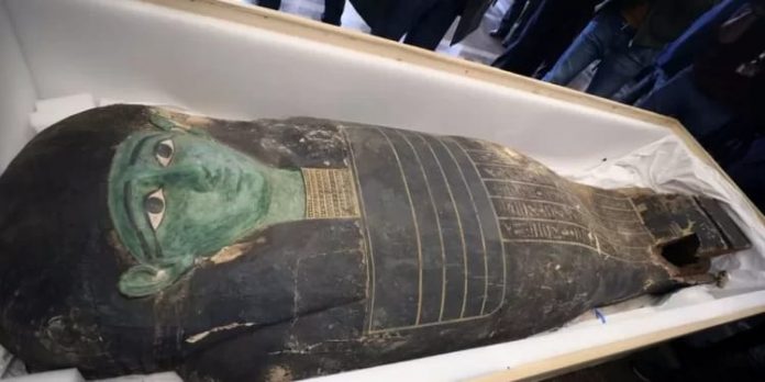The 2.9m (9.5ft) long “Green Coffin” dates back to the Late Dynastic Period, which spanned 664BC to 332BC, and belonged to a priest called Ankhenmaat.