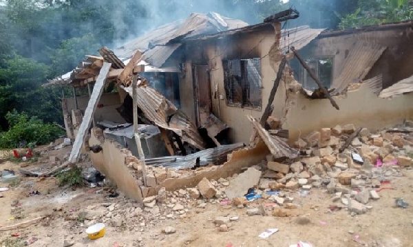 Some angry youth of Ntoraku, near Adansi Fomena in the Ashanti Region have allegedly burnt down a three-bedroom house belonging to a fetish priest, Collins Asamoah for killing a taxi driver, Kwadwo Antwi.