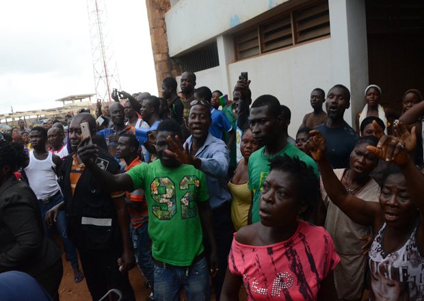 Hundreds of angry residents in Akyem Abomosu in Atewa West District in Eastern Region last night besieged the Police station in the community over the arrest of two persons suspected to be part of the armed robbers who attacked the Adonteng Rural Bank last week.