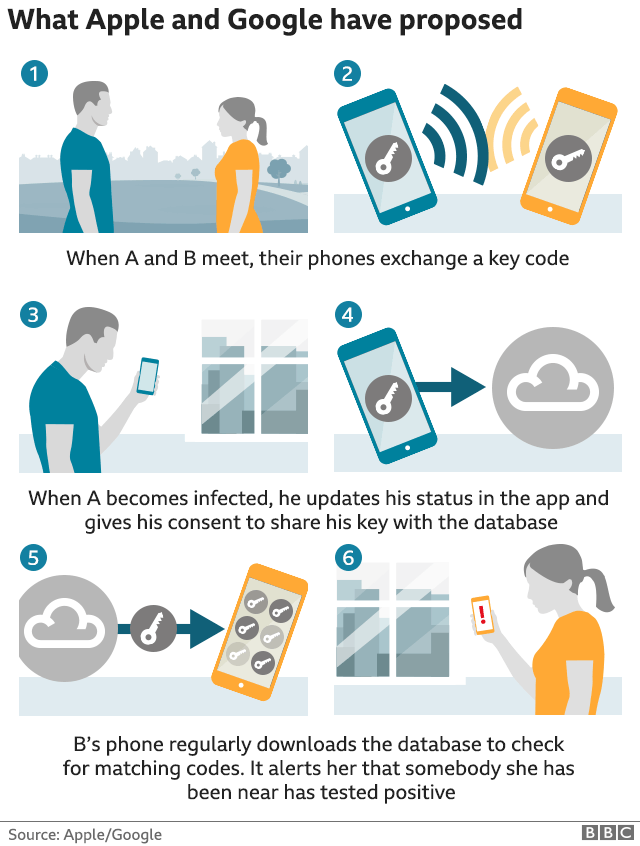 If one of the phone-owners is subsequently diagnosed as having caught the virus, others they might have infected can be sent alerts advising them to get tested or go into self-isolation.