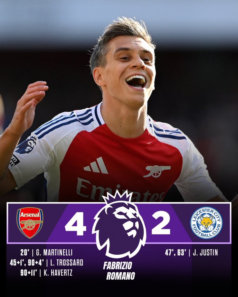 However, Trossard’s late effort deflected off Ndidi and past the Danish goalkeeper, allowing Havertz to add the finishing touch from close range.