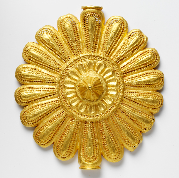 They include three heavy cast-gold items known as soul washers’ badges (Akrafokonmu), which were worn around the necks of high ranking officials at court who were responsible for cleansing the soul of the king.