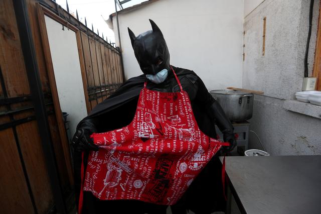 The man, who wears a shiny batman suit complete with a coronavirus-ready sanitary facemask, delivers a few dozen plates of hot food to homeless people throughout the South American capital on a regular basis.
