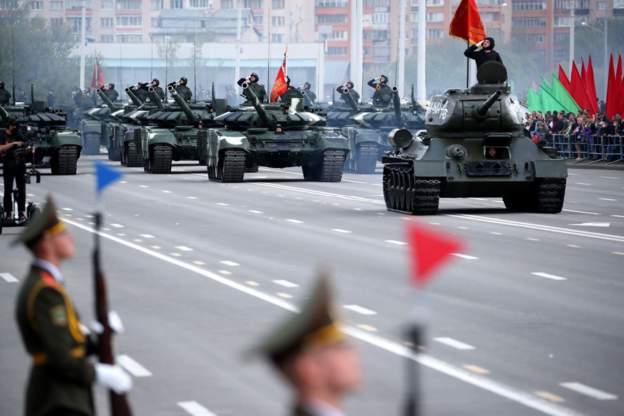 On Saturday, there were marches by soldiers while tanks moved along Victors Avenue in capital Minsk.