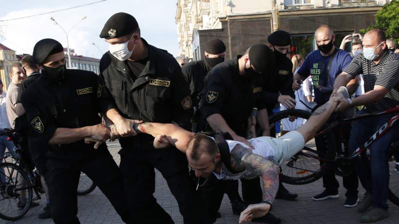On Saturday the rights group Vyasna said at least 120 people had been arrested across the country during protests. Some have now been released.