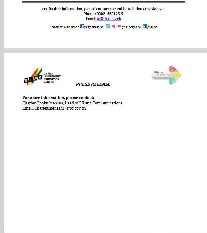 The GIPC has welcomed Dr. Brempong with great optimism, looking forward to her leadership in driving the Centre’s mission forward. For further information, the Public Relations Division can be contacted via phone at 0302-665125-9 or email at pr@gipc.gov.gh.