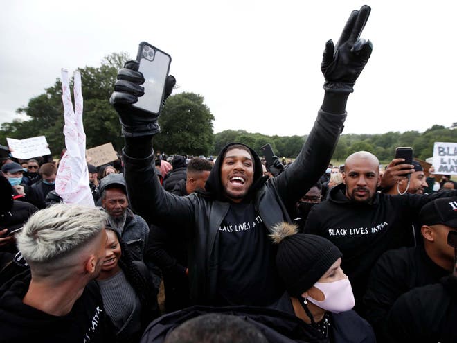 The 30-year-old boxer, who holds the IBF, WBA and WBO heavyweight world championships, attended the peaceful protest on Saturday where he read out a speech on a microphone to the thousands in attendance.
