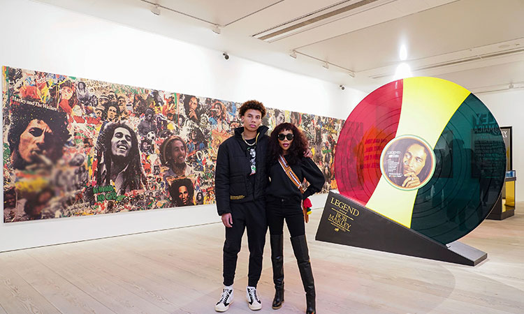 Bob Marley’s daughter and grandson on Wednesday visited an exhibition that opened in London telling the life story of the late Jamaican reggae singer.