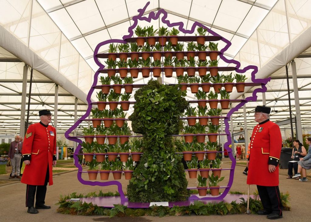 The 96-year-old monarch was driven around the Royal Horticultural Society’s annual festival of garden design in West London in a buggy, saving her from having to walk around the show’s attractions.