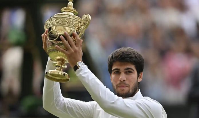 In a brilliant, gutsy performance in the Wimbledon final on Sunday, world No. 1 Carlos Alcaraz captured his second Grand Slam title in less than a year, defeating seven-time Wimbledon champ Novak Djokovic 6-1, 7-6 (6), 6-1, 3-6, 6-4 and ending the 36-year-old Serbian’s quest for the calendar Grand Slam in 2023.