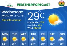 Ghana Weather forecast, alerts and UVB index, Wednesday 21 July 2021