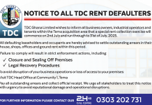 TDC Ghana Limited has issued a stern warning to rent defaulters operating within the Tema acquisition area, announcing the launch of a special...