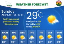 Ghana Weather forecast, alerts and UVB index, Sunday 25 July 2021