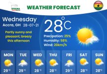Ghana Weather forecast, alerts and UVB index, Wednesday 28 July 2021