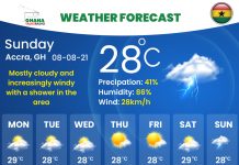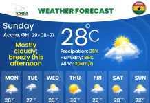 Ghana Weather forecast, alerts and UVB index, Sunday 29 August 2021