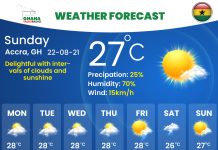 Ghana Weather forecast, alerts and UVB index, Sunday 22 August 2021