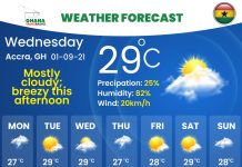 Ghana Weather forecast, alerts and UVB index, Wednesday 01 September 2021