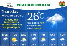 Ghana Weather forecast, alerts and UVB index, Thursday 02 September 2021
