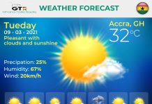Ghana Weather forecast, alerts and UVB index, Tuesday 09 March 2021