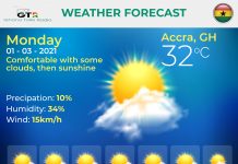 Ghana Weather forecast, alerts and UVB index, Monday 01 March 2021