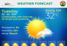Ghana Weather forecast, alerts and UVB index, Tuesday 02 March 2021