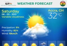 Ghana Weather forecast, alerts and UVB index, Saturday 06 March 2021